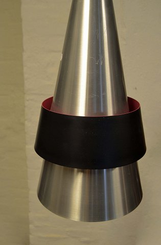 Pendel lampe model 'Corona' designet af Jo Hammerborg for Fog og Mørup. Pendlen er udformet af aluminium og lakeret metal. Højde: 45 cm. Ø: 23 cm. Lampen fremstår med brugsspor.