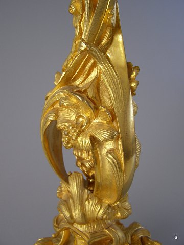 Par franske Rokoko kandelabre 5-armede, af lueforgyldt bronze, rigt prydet med rocailler, blomster og bladværk i form af drueranker, stamme gennembrudt, H: 72 cm.