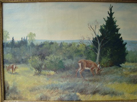 Maleri af G. Jans - Råvildt ved bevoksning.
