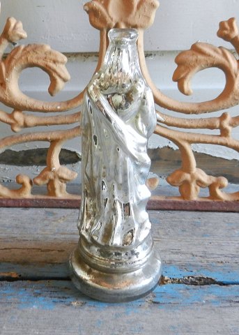 Sjælden Jesus figur i fattigmands sølv, han er klædt i kåbe, med glorie over hovedet. Meget fin patina.