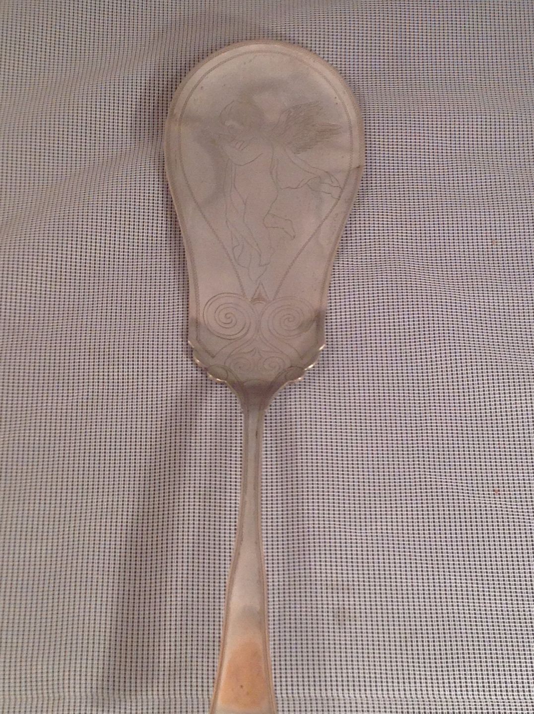 Antikes Silber Tortenheber mit Muster in laffen, mit Engel Trinkwasser aus einer Schüssel.