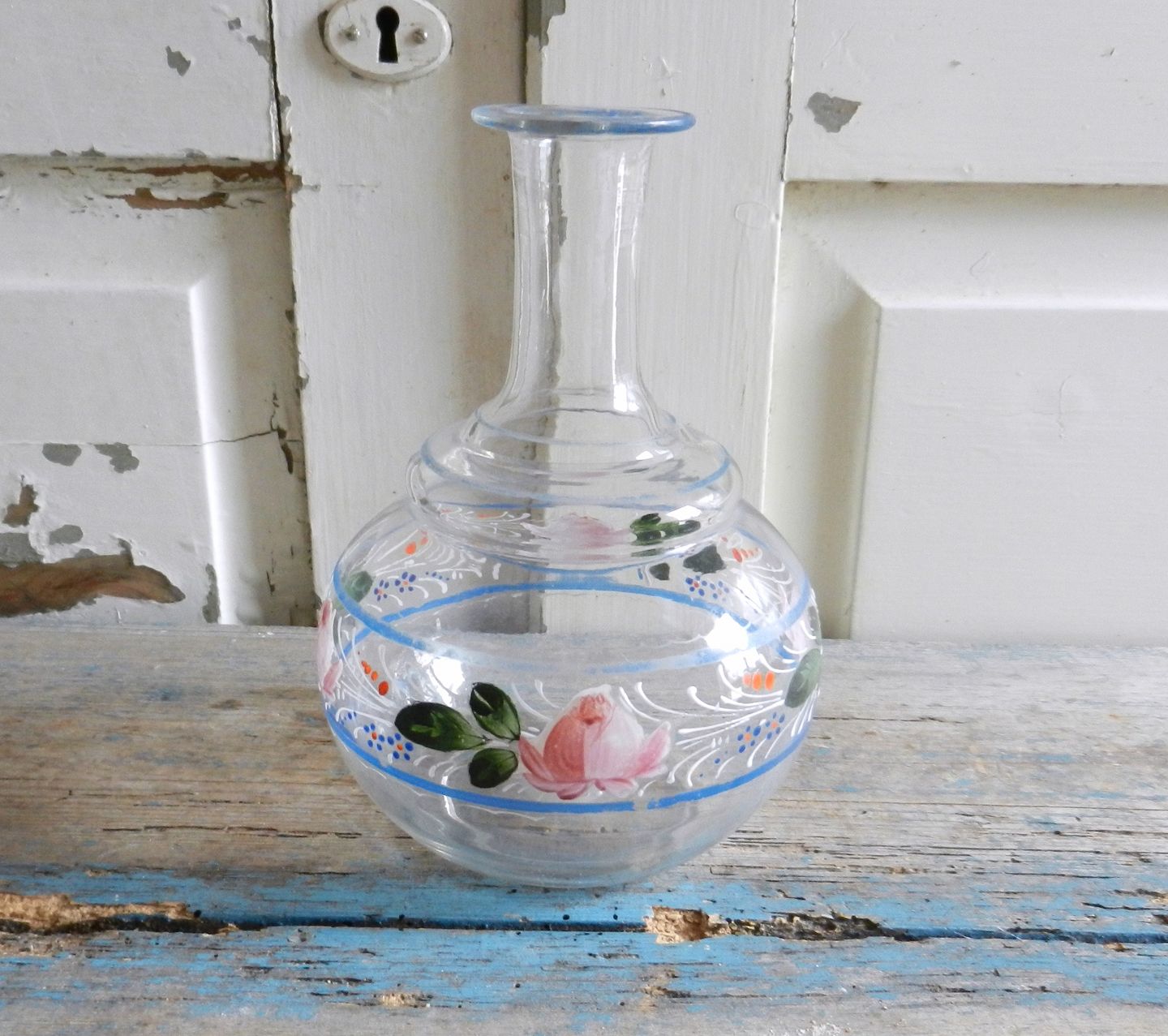Engelsk vandkaraffel med rosen emalje bemaling.