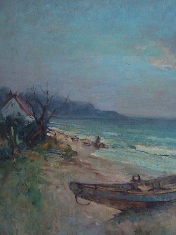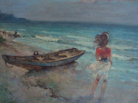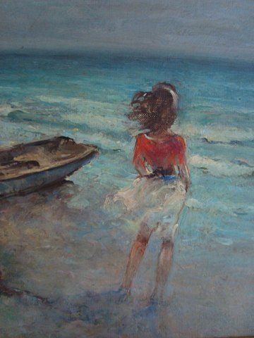Maleri af Ejnar Ploug - Pige der kigger ud over vandet.