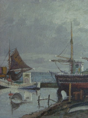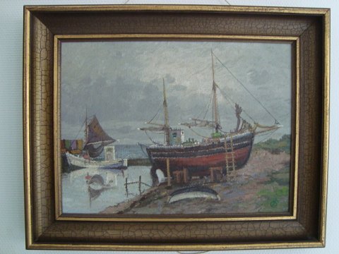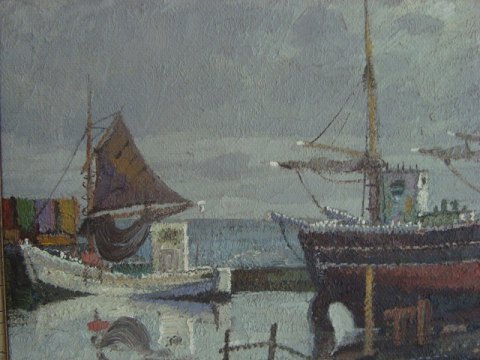 Maleri af Jens Sinding Christensen - Fiskekuttere i havn.
