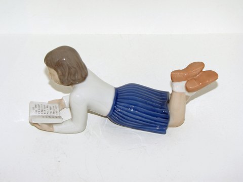 Bing & Grøndahl Figur, Liggende pige, der læser i bog - kaldet Merete.