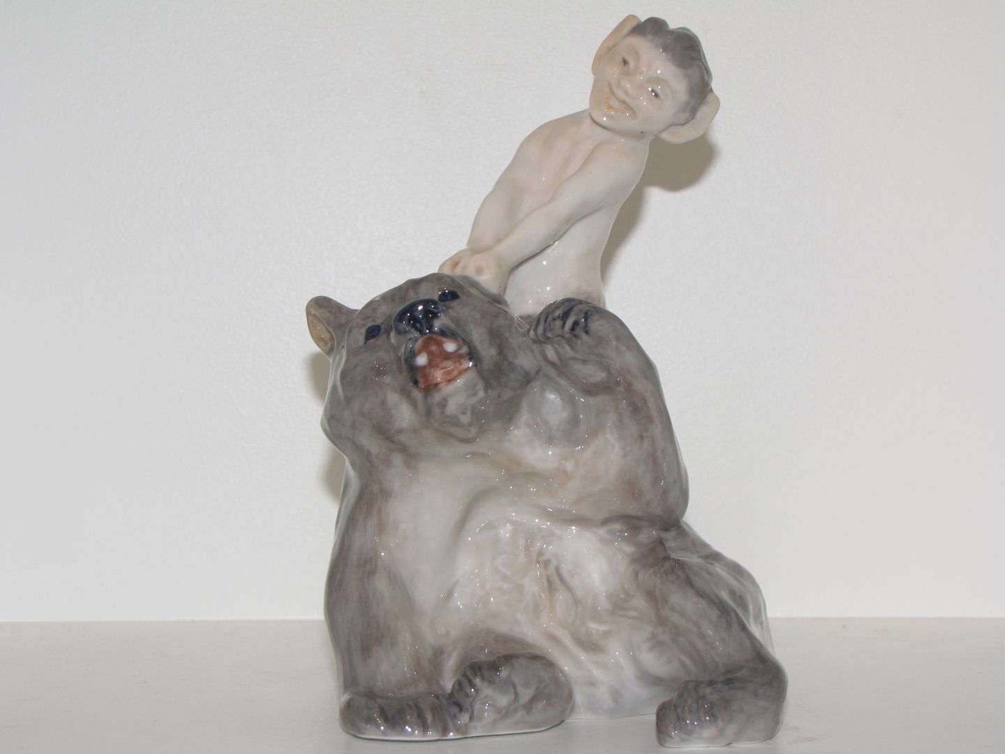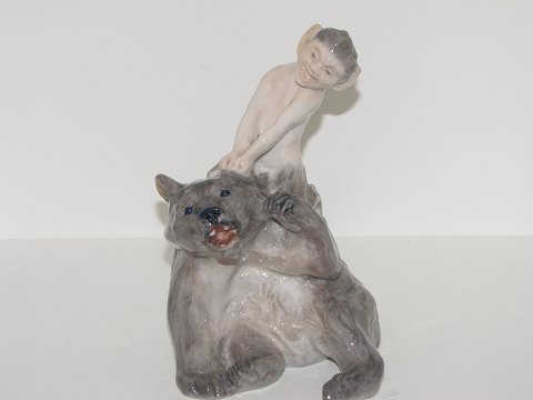 Rare and larger Royal Copenhagen Figurine, Faun pulling bears ear.