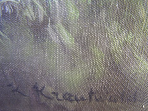 Keld Krautwald Samtalende kvinder i alpelandskab 70*50 cm. med ramme 88*66 cm.