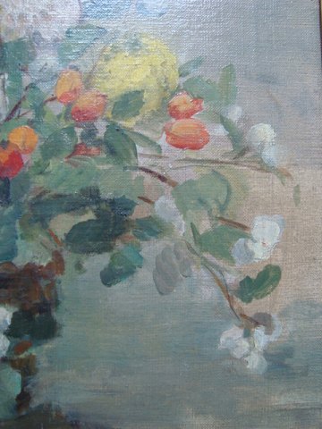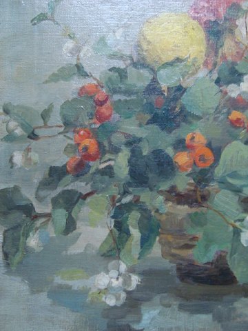 Maleri - Bærgrene og blomsterbuket i vase af Einar Olsen.
