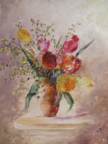 Forårsbuket i vase Sylvia van Deurs sign SvD
