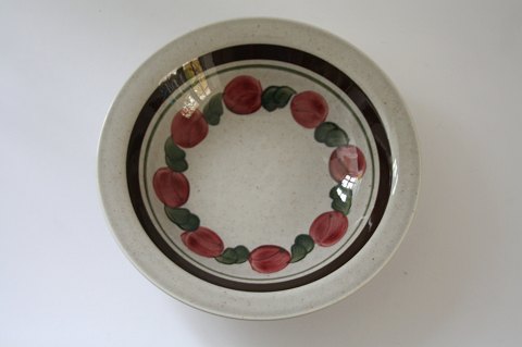 Rørstrand, Birgitta. Gråt stoneware med håndmalede blomster og brun kant.