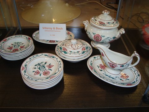 Villeroy & Boch dukkespisestel med 6 kuverter med rød blomsterdekoration