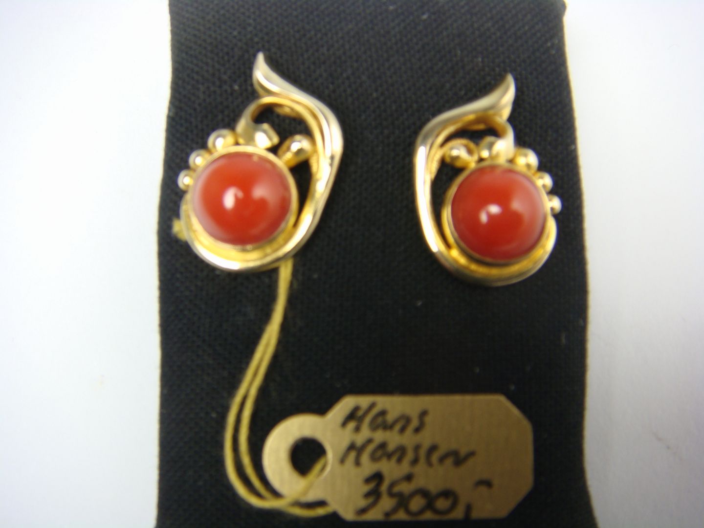 Hans Hansen Ørelokker med skruer - 18k med koral