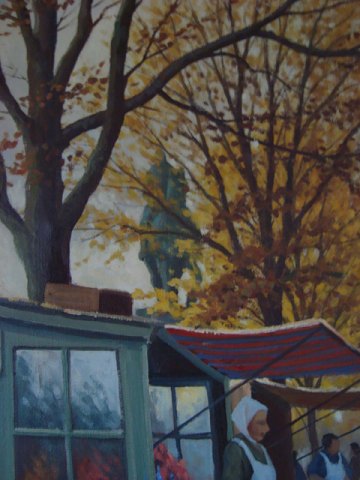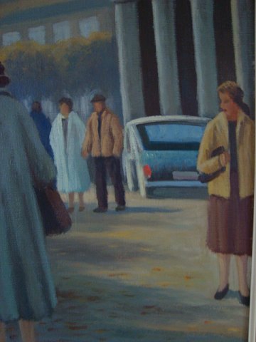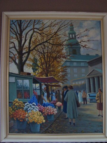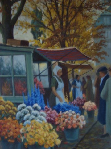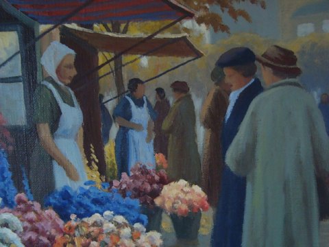 Maleri af Chr. Jensen Virklund - Blomstersælgerne ved Christiansborg Slotskirke.