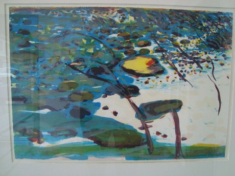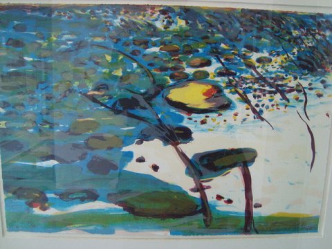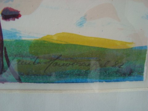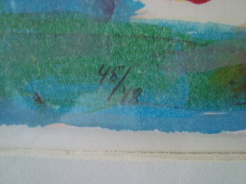 Farvelitografi af Anita Houvenaeghel - Landskab 1982.