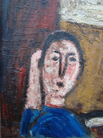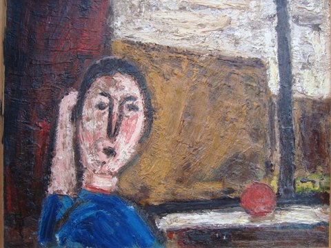 Maleri af Peder Brøndum Sørensen - Figur i blåt ved vindue 1967.