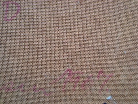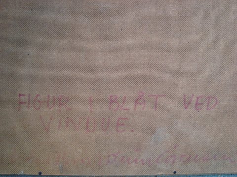 Bagpå - "Figur i blåt ved vindue" - "Peder Brøndum Sørensen 1967"