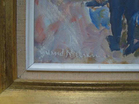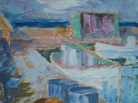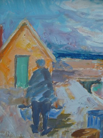 Maleri af Svend Nielsen - Havneparti på Bornholm.