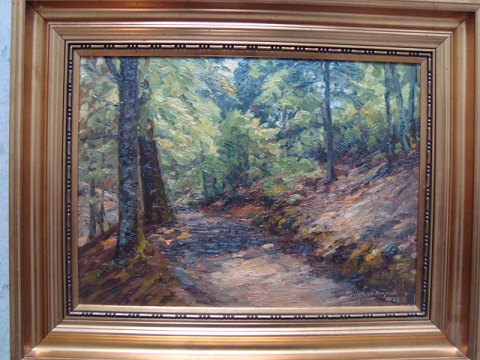 Maleri af Hans Gyde-Petersen - Vej gennem skov 1923.