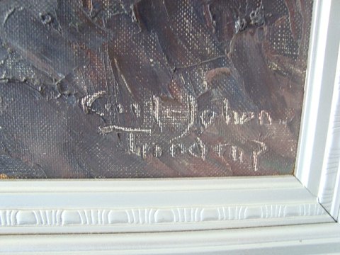 Maleri - Carl Johan Tandrup - Parti fra Rebild Bakker med Top Karens Hus og Blokhuset.