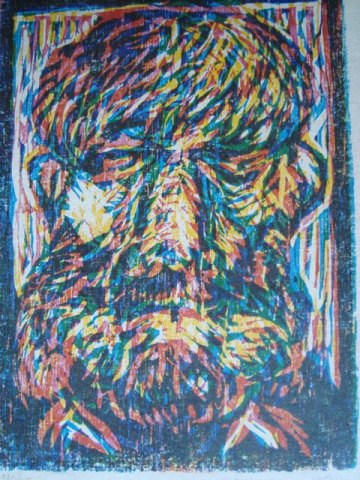 Farvetræsnit af Jørn Grynnerup - Portræt 1977.