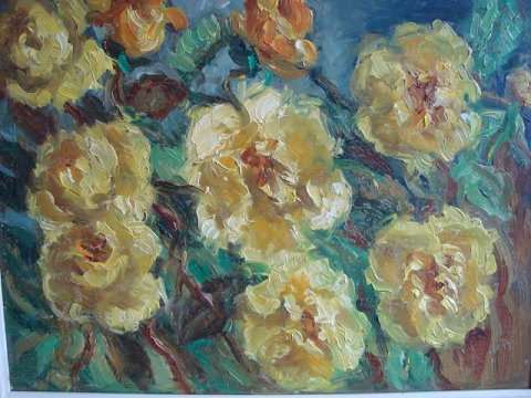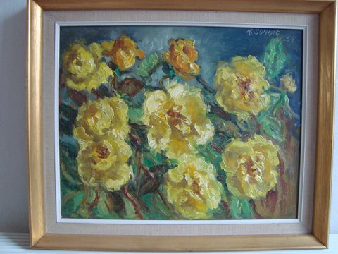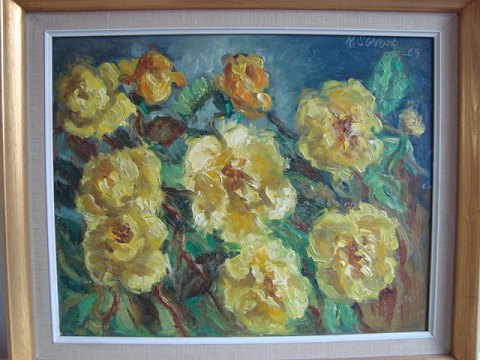 Maleri af den svenske kunstner Brita Richardis Sörvik - Gule Roser 1969.