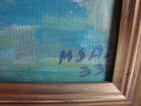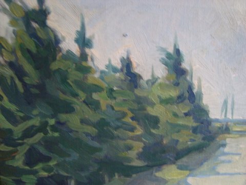 Maleri af Mogens S. Andersen - Ved haven til Blåvand Kro 1933.