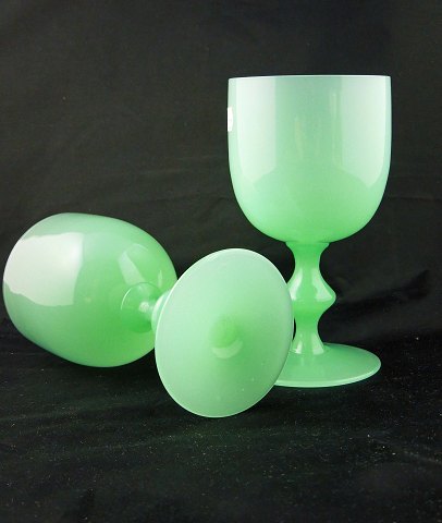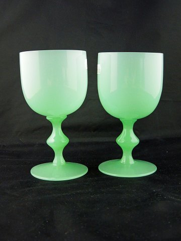 To sæt vinglas udformet i hvidt og grønt glas. Glassene er i perfekt stand.