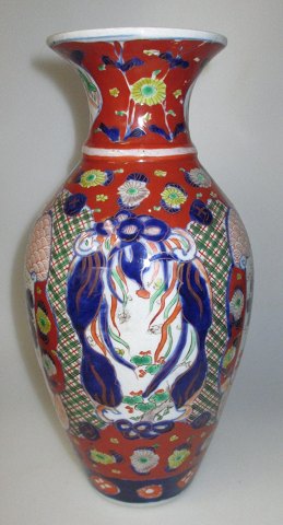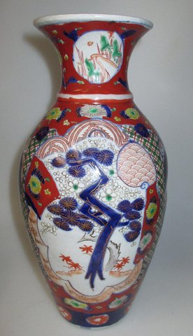 Imari vase, 19. årh. Japan. Polykrom dekoration med cobolt blåt, forgyldninger, rødt m.v. Medaljoner med træer og ho-o fugle. H.: 25 cm. Virkelig pænt eksemplar.