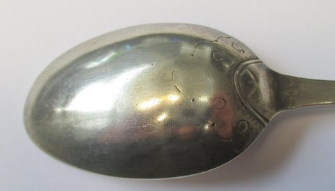 Joachim Weller (ca. 1725 - 1792) Holstebro: Barok spiseske i sølv. Med violin skaft med rococo dekorationer. Ligedeles dekorationer på laf. L.: 19,2 cm. Vægt: 48 gram. Mester stemplet: IW.