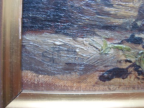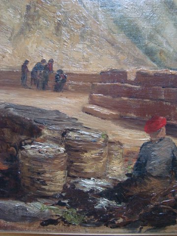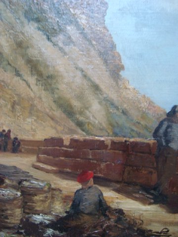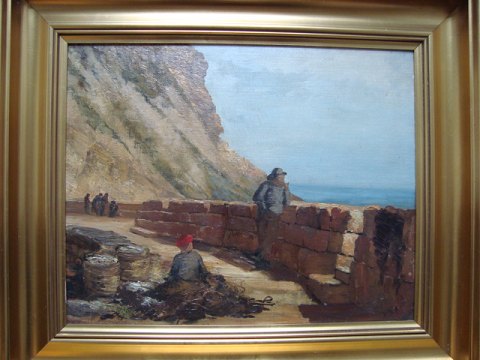 Maleri af Syrak Hansen 1915 - Sydlandsk kystparti med fiskere.