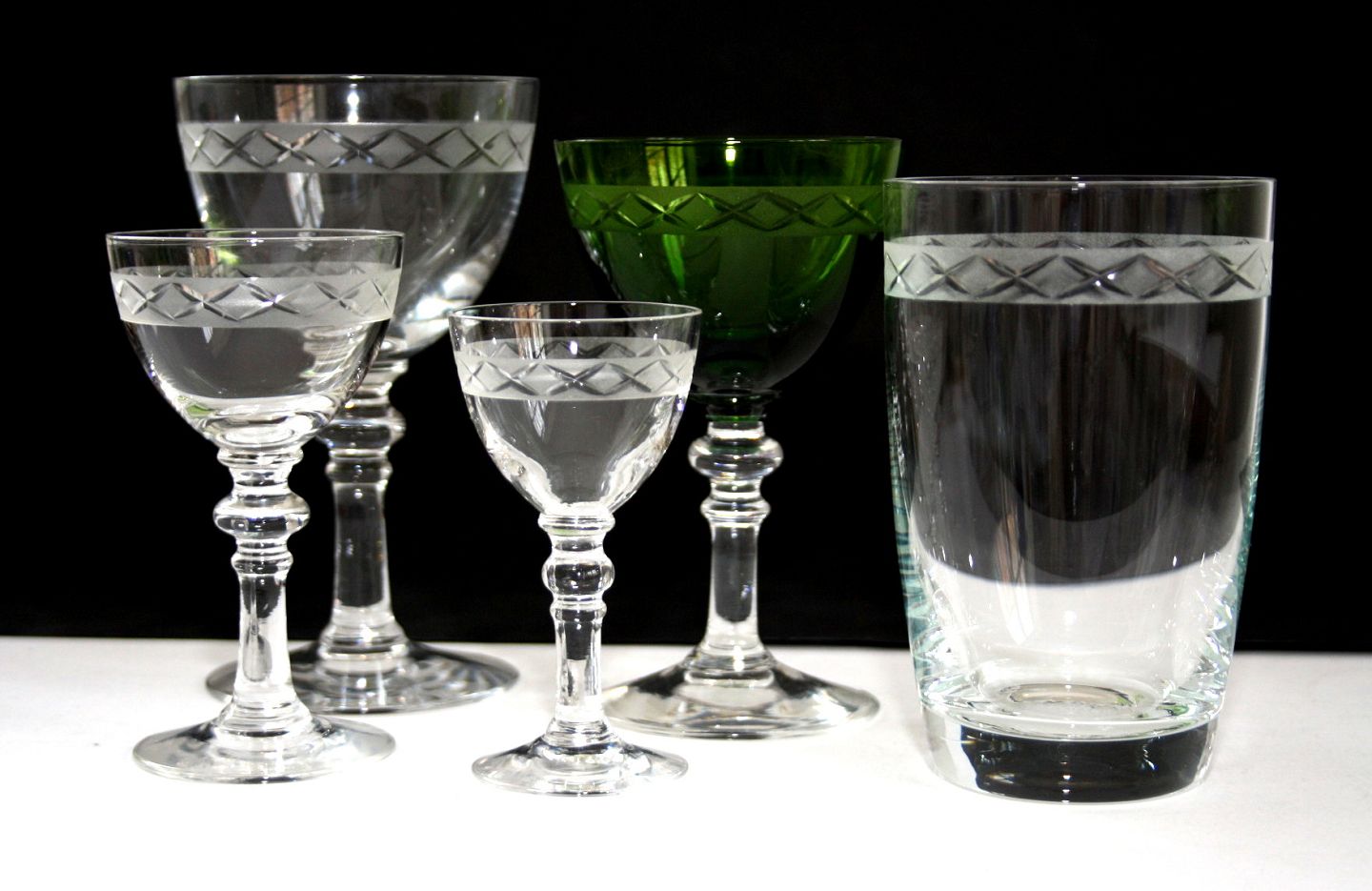 Holmegaards Glasværk, Brattingsborg krystalglas, slebet bort om kummen og knop på stilken. Design: Jacob E. Bang 1930. Dette er et oversigtsbillede.