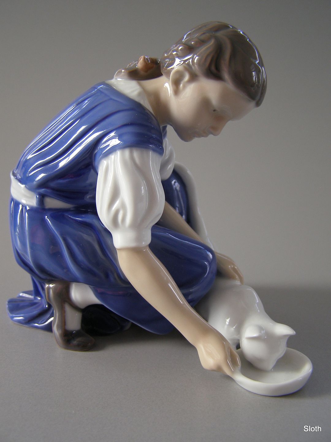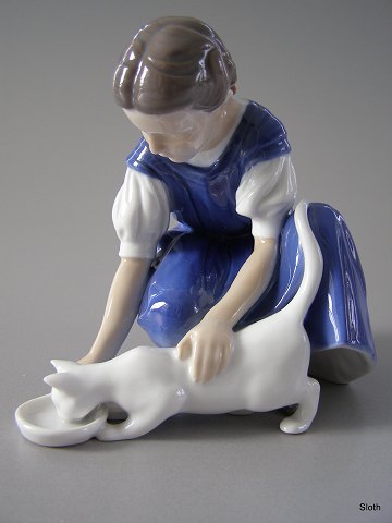 B&G 1745 Pige med kat I.P. Irminger 1. sort. H: 14 cm. L: 16 cm.