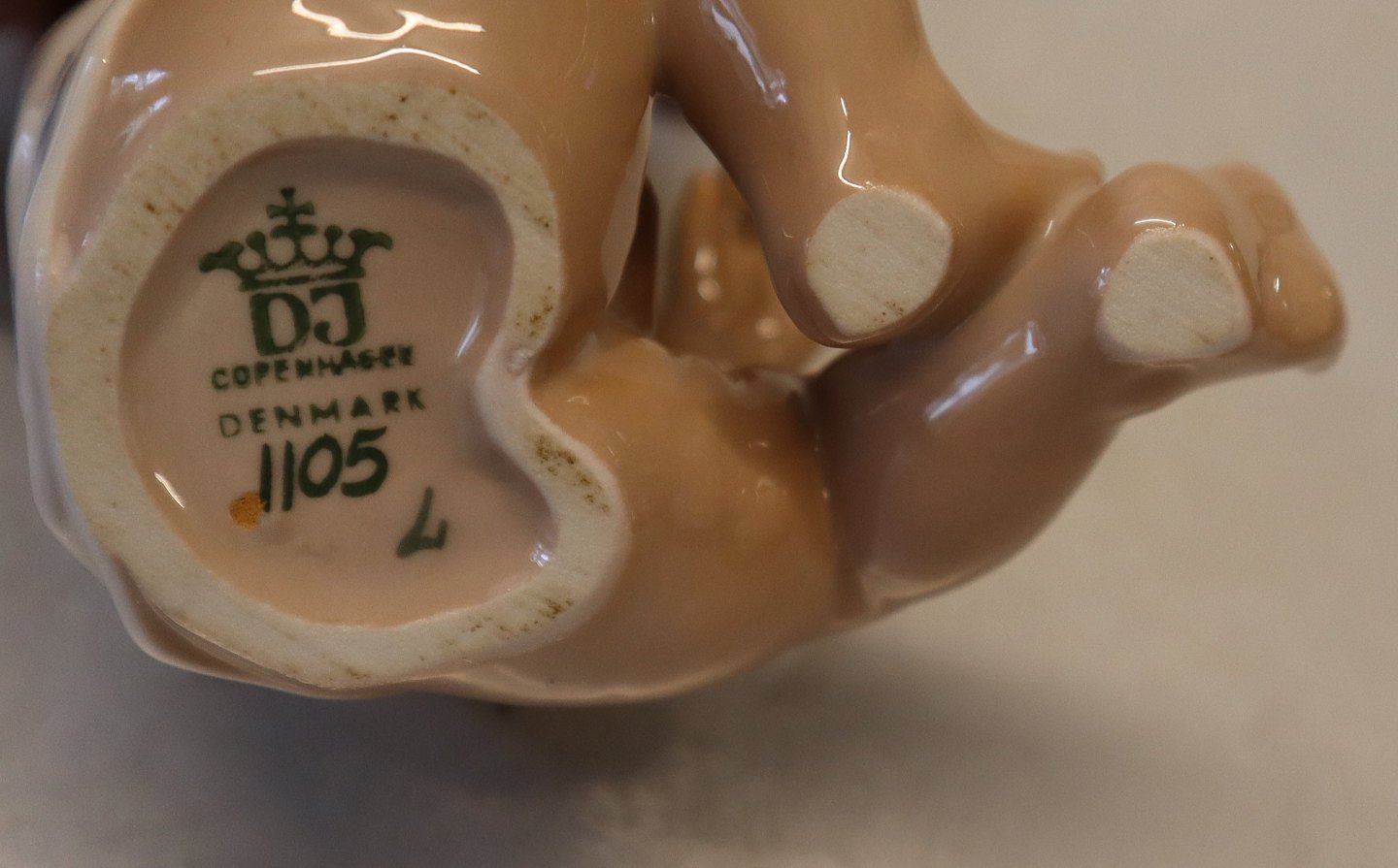 Dahl Jensen 1105 Lille baby dreng (DJ) 12 cm. Mærket med kongelig krone og DJ Copenhagen i hel og fin stand.