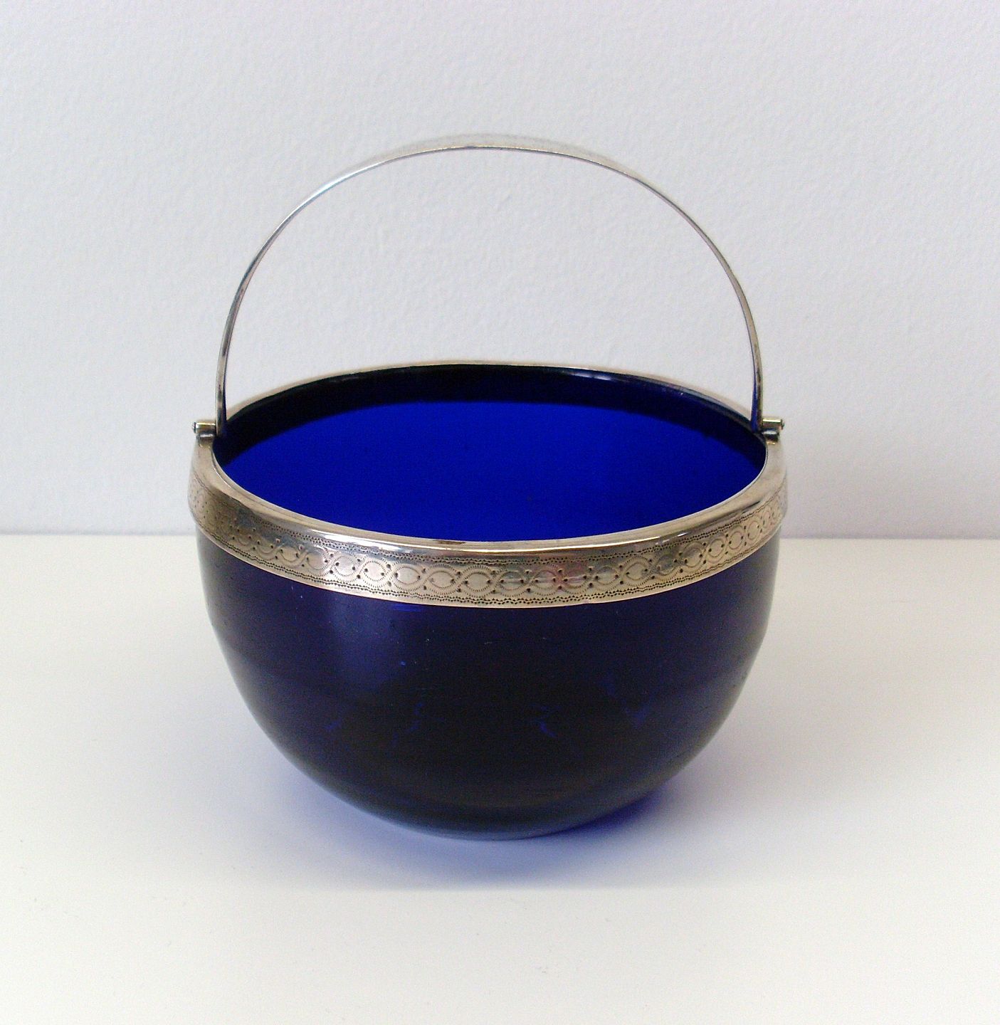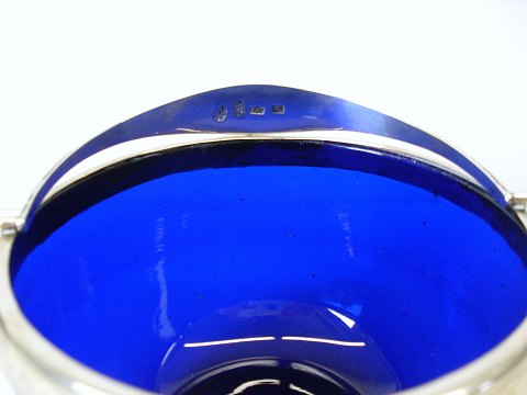 Smuk blå sukkerskål med Empire sølvmontering stemplet 1817, Københavnermester Andreas Kelberlade, borgerskab 1798.