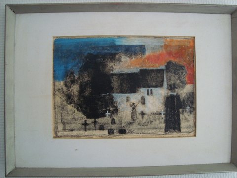 Pastel af Poul Møller - Parti fra Jelling Kirkegård 1972.