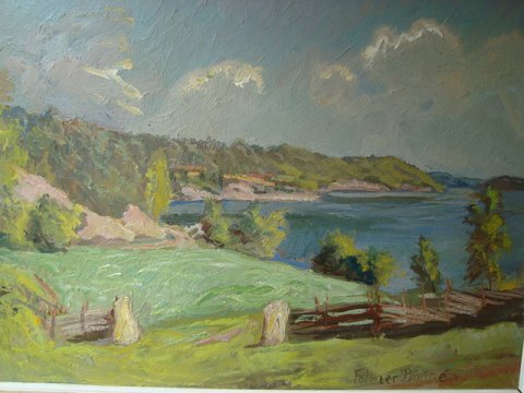 Udsigt fra kunstnerens sommerhus i Torpön ved Sommensøen i Östergötland.