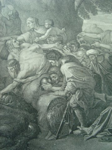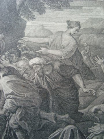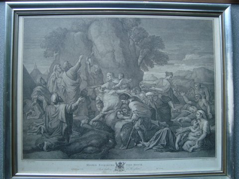 Kobberstik af Jean Baptiste Michel 1788 efter maleri af Nicolas Poussin 1649 - Moses Striking the Rock.