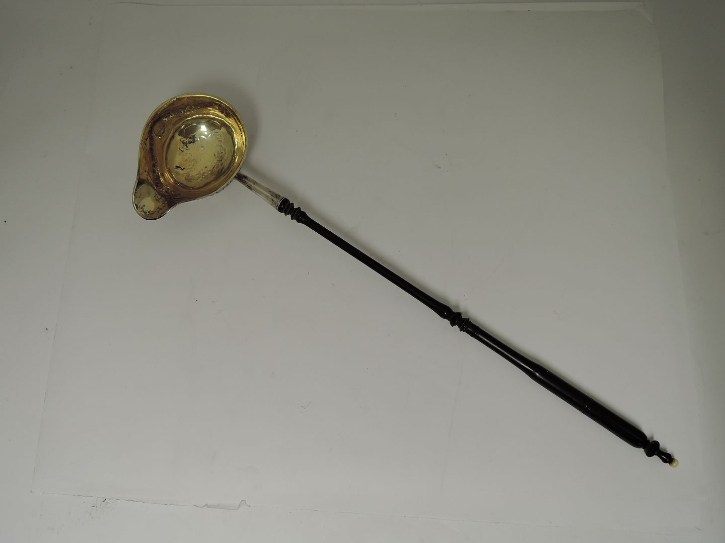 Puncheske. Sølv (830). Skaft af træ. Mester : Andreas Holm, København. Produceret 1789. Længde 43 cm