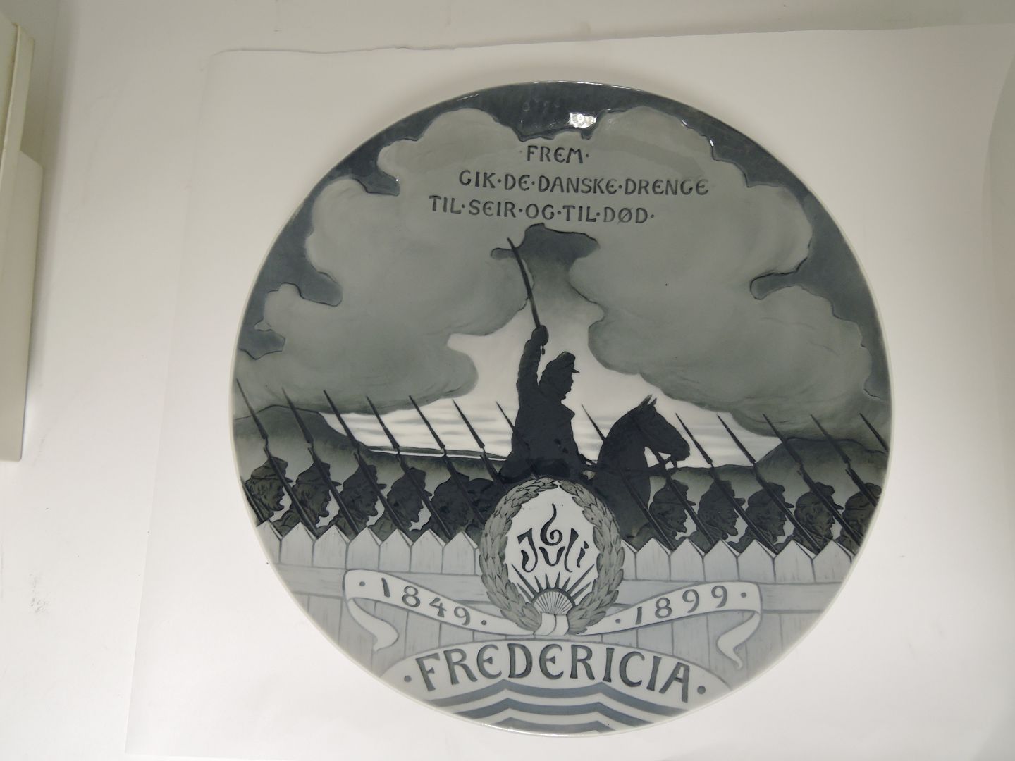 Royal Copenhagen. Mindeplatte #26. Fremstillet til 50 årsdagen for Fredericiaslaget d.Juli 1849. Produceret 1899. Diameter 32 cm. ( 1 sortering )