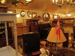 Stor salgsudstilling med restaurerede møbler håndpolerede mahognimøbler, afsyrede fyrretræsmøbler, malede træmøbler, kun originale gamle og antikke møbler.