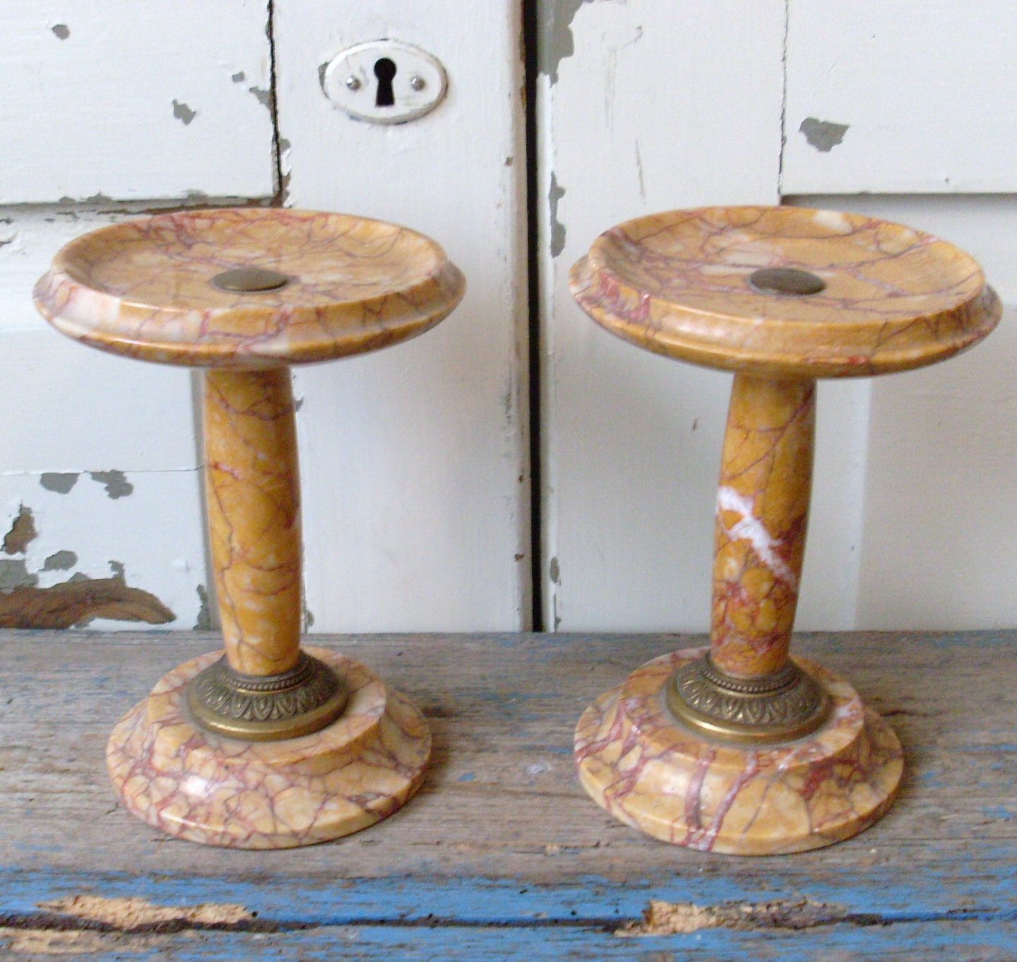 Par Tazza i rødbroget marmor med lueforgyldt bronze montering.