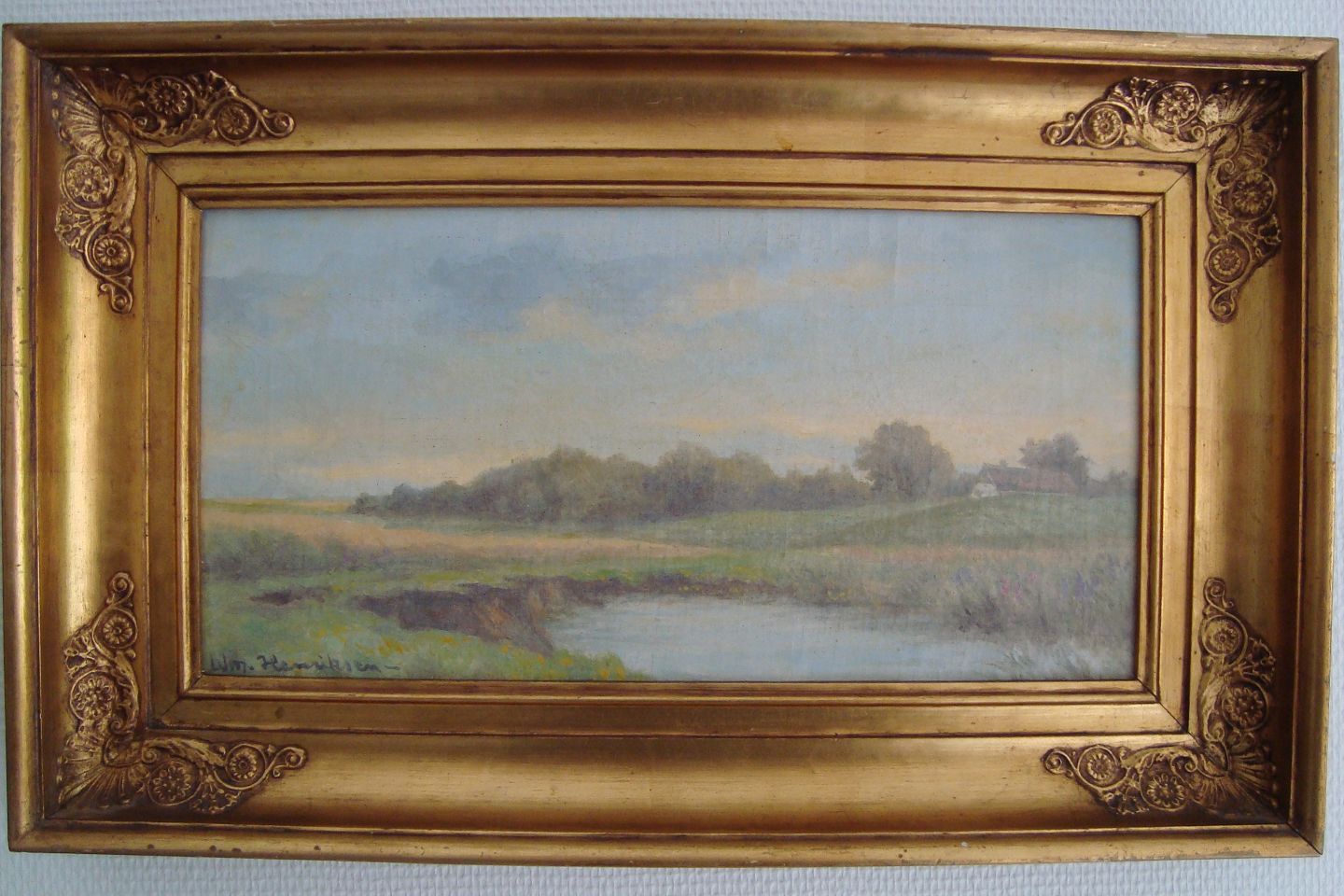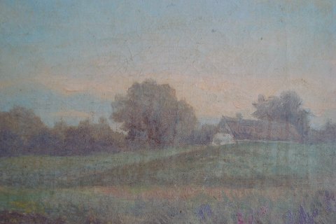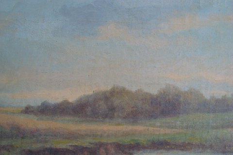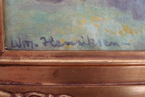 Text available in Danish: Maleri af William Henriksen - Aftensol ved Raageleje.