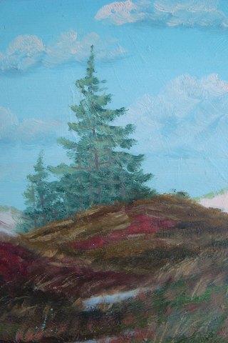 Maleri - Finn Dannerfjord - Klitlandskab med graner.