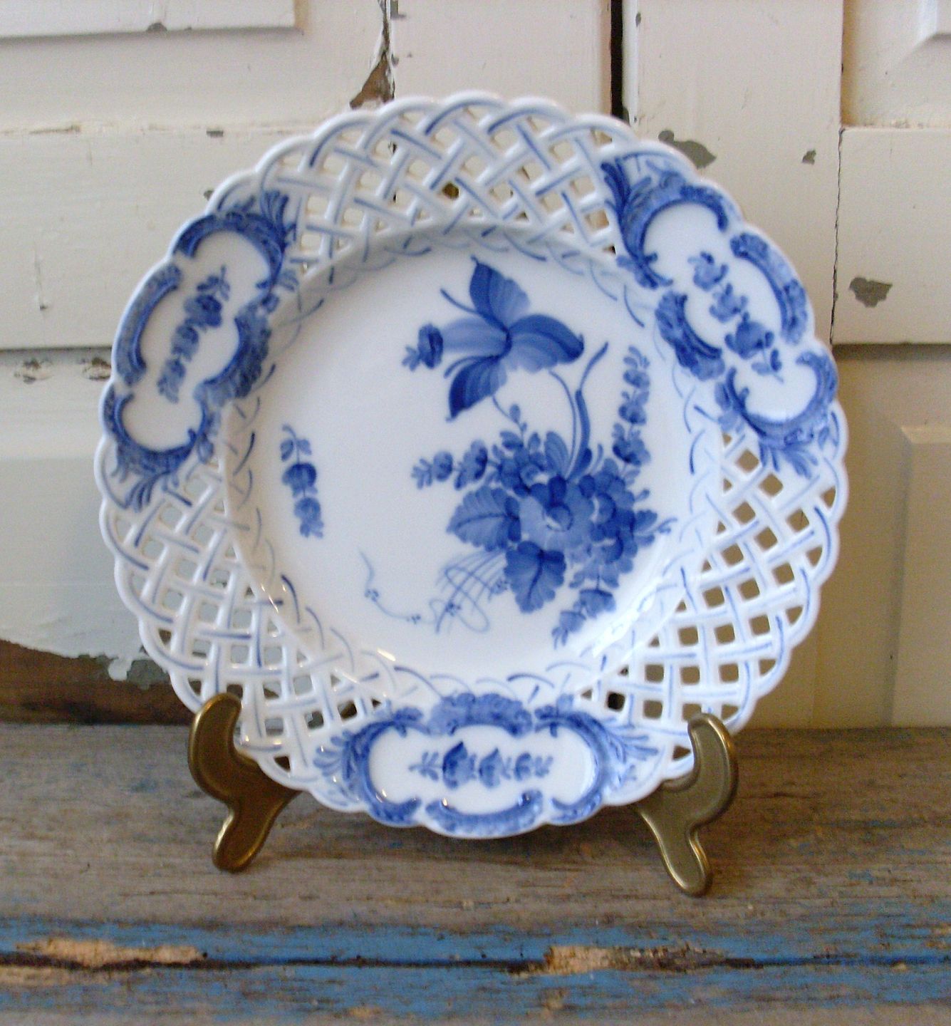 Royal Copenhagen Svejfet Blå Blomst tallerken med gennembrudt kant
