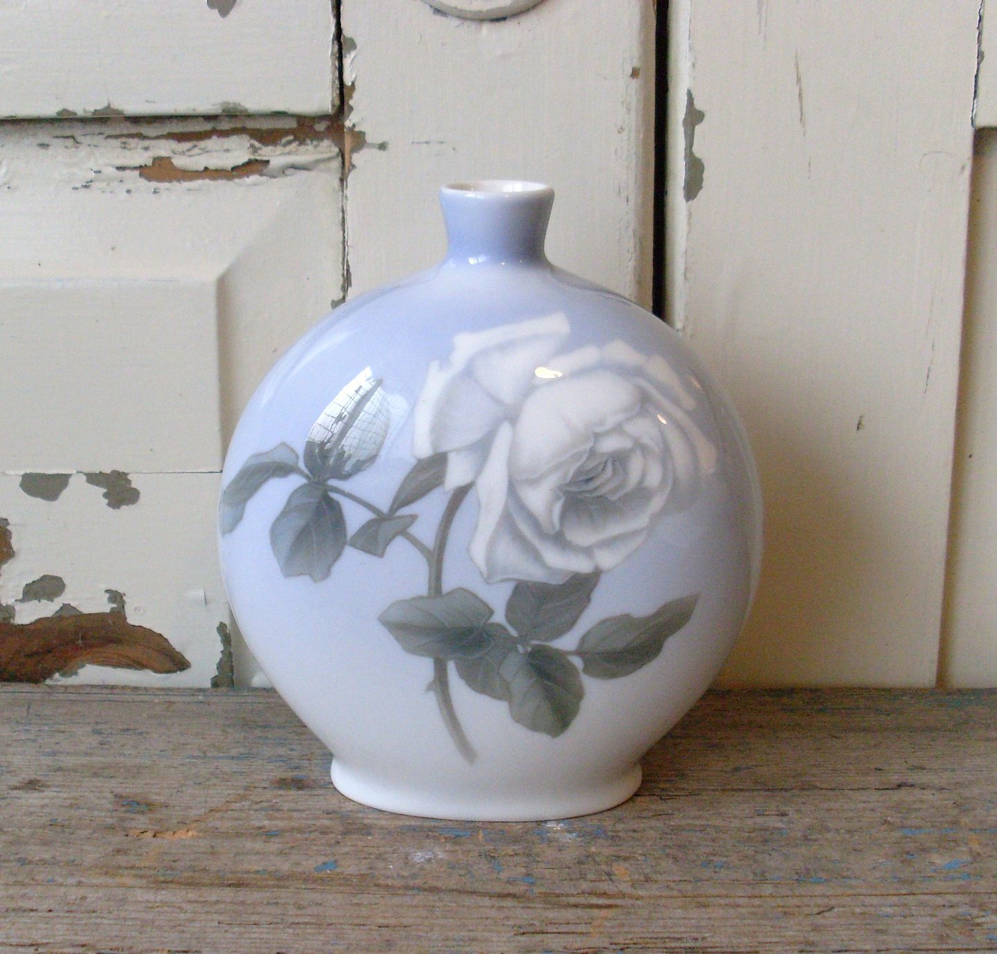 Royal Copenhagen Art Nouveau vase dekoreret med hvid rose.