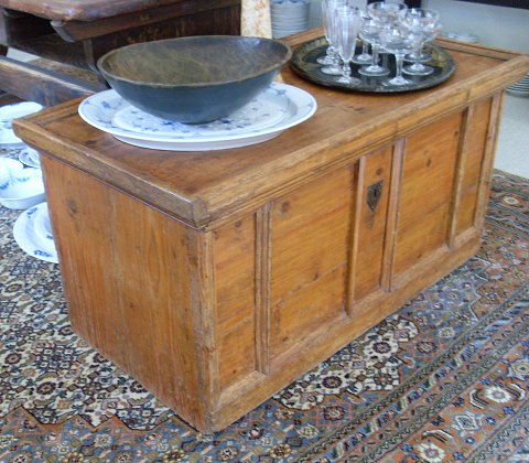 Smuk svensk kiste i fyrretræ med fladt låg perfekt som sofa bord.