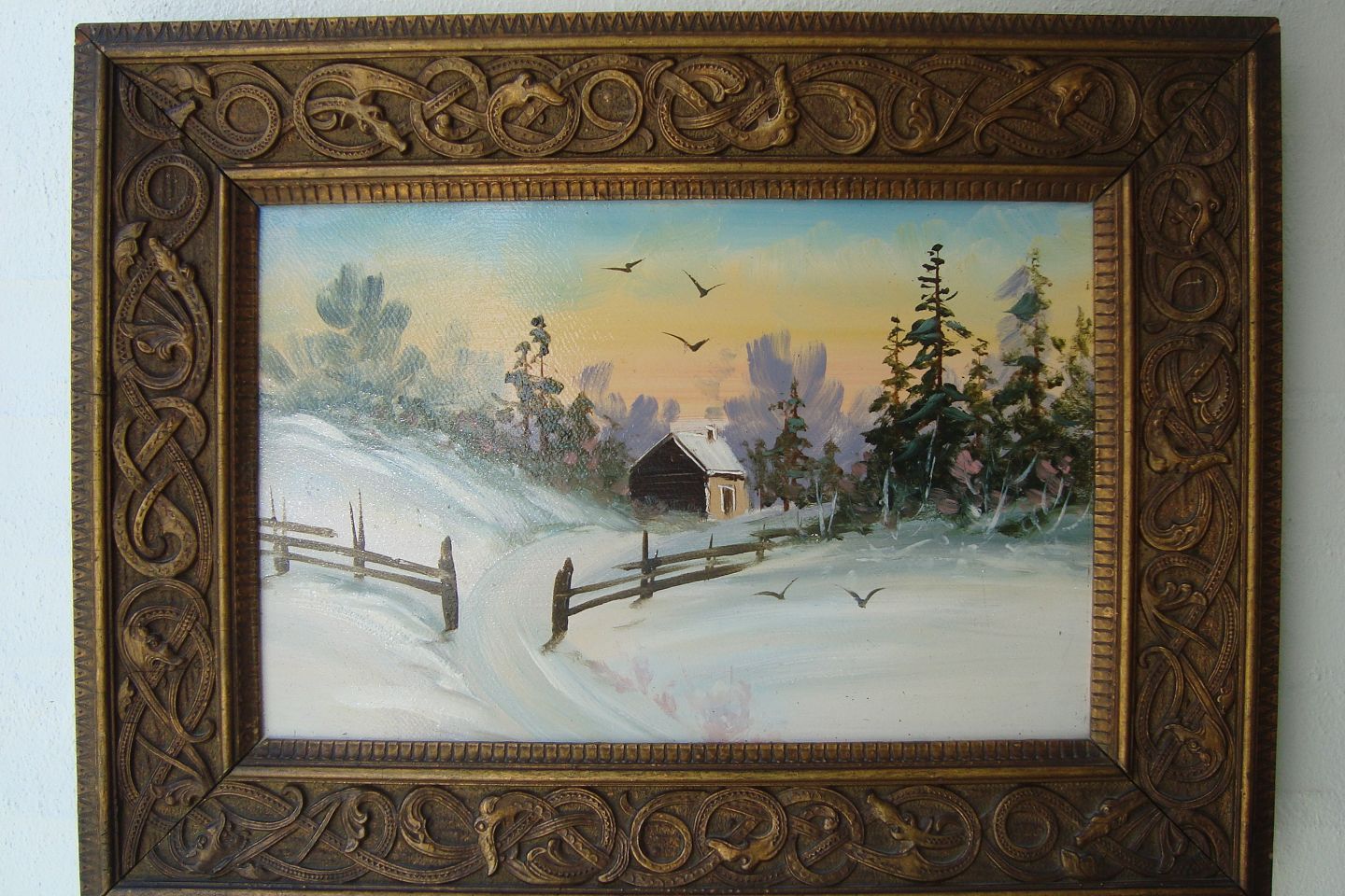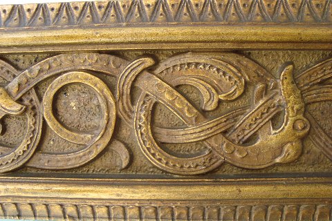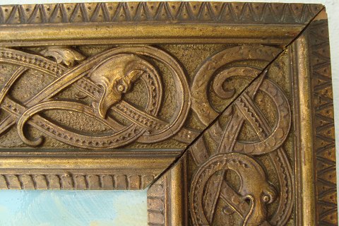 Indrammet i samtidig smuk ramme med vikingeornamenter.
