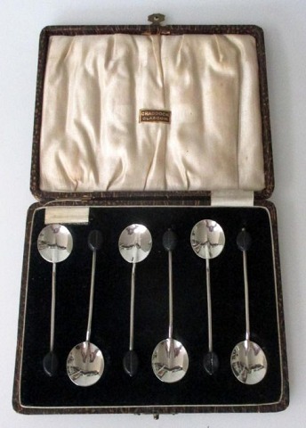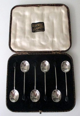 12 pcs. coffee spoons in silver with coffee beans as a shank, England, 19th century. Stamped. In two original boxes. L .: 8.5 cm.