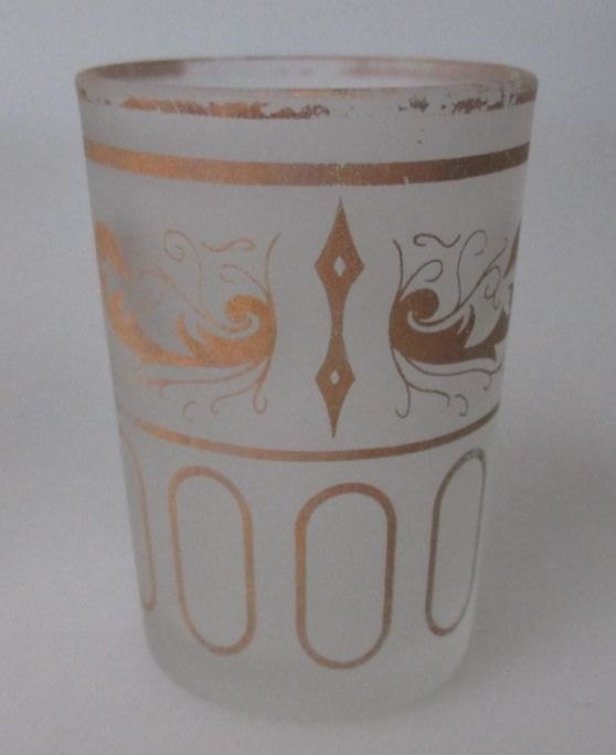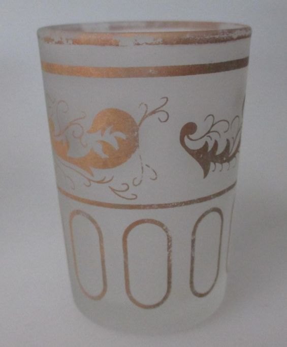 Glass of vodka. Colourless frosted glass. Germany, ca. 1880. With gilding. H .: 6.3 cm.