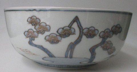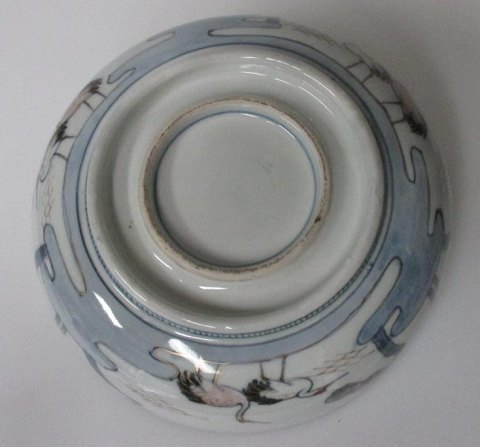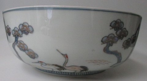 Japansk Imari skål i porcelæn, 19. årh. Dekoreret med traner og Fuyiyama. Med guld dekorationer. Ustemplet. H.: 9 cm. Dia.: 21,5 cm. Perfekt stand.